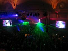 Kurzaal Kurhaus Scheveningen. Lichtshow, geluidsysteem en 2 videoschermen van 4 bij 3 meter |